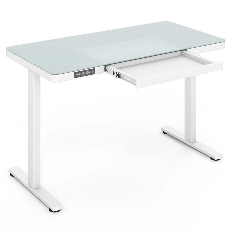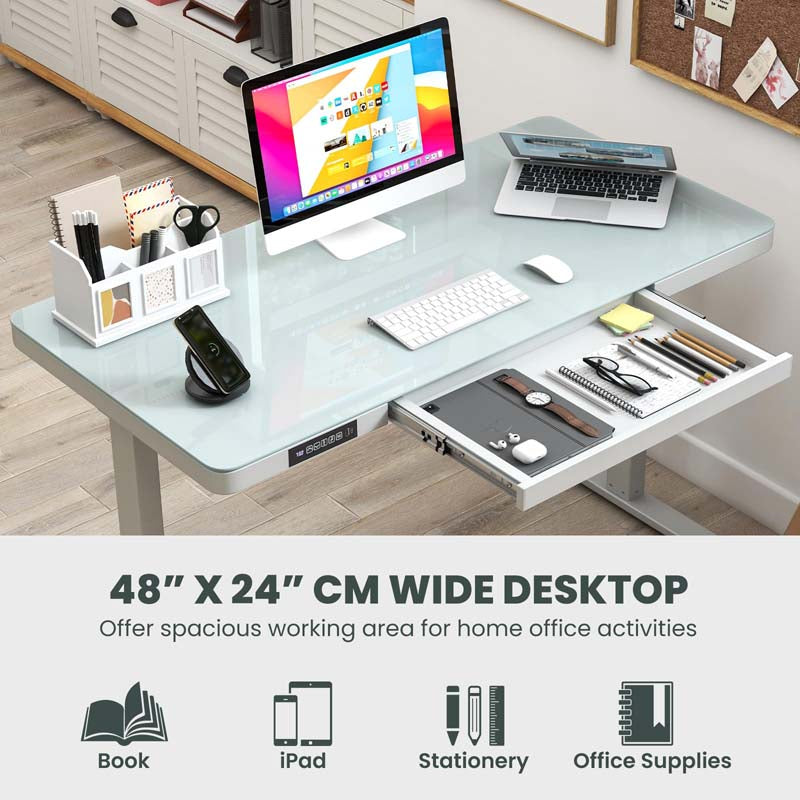48" x 24" Electric Standing Desk with Drawer, Tempered Glass Top, Memory Positions & USB Type-C Outlets, Sit Stand Desk for Home Office