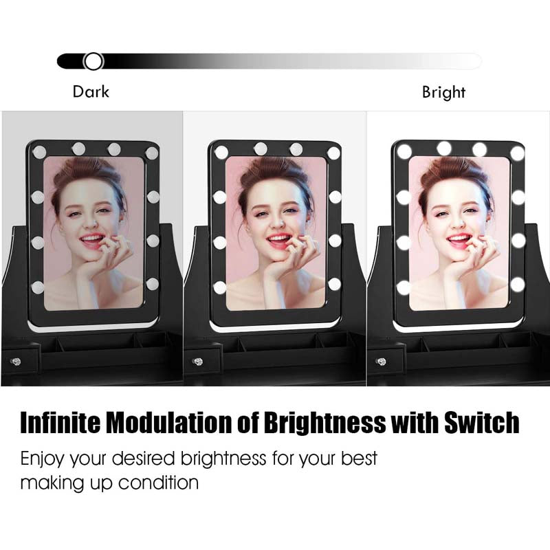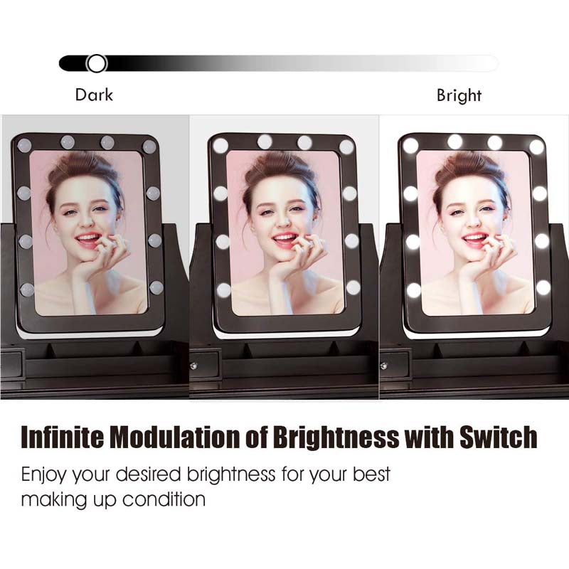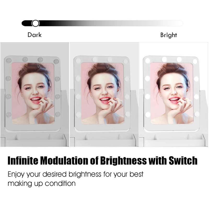 - 360° Swivel Mirror with 10 LED Bulbs: Get movie star vibes with the large, rotatable mirror surrounded by 10 dimmable LED bulbs. Easily adjust brightness to suit different lighting needs and ensure flawless results every time.