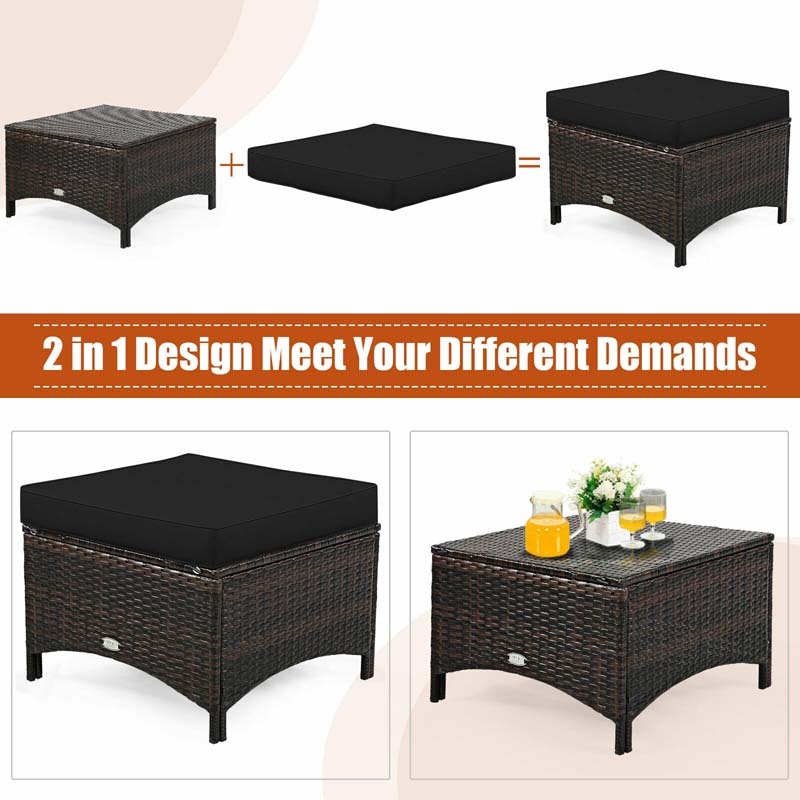 - Modular Layout with Versatile Use: This 5-piece conversation set includes 2 armchairs, 1 loveseat, and 2 ottomans that can be arranged freely. The ottoman cushions are removable, allowing them to double as coffee tables when needed.