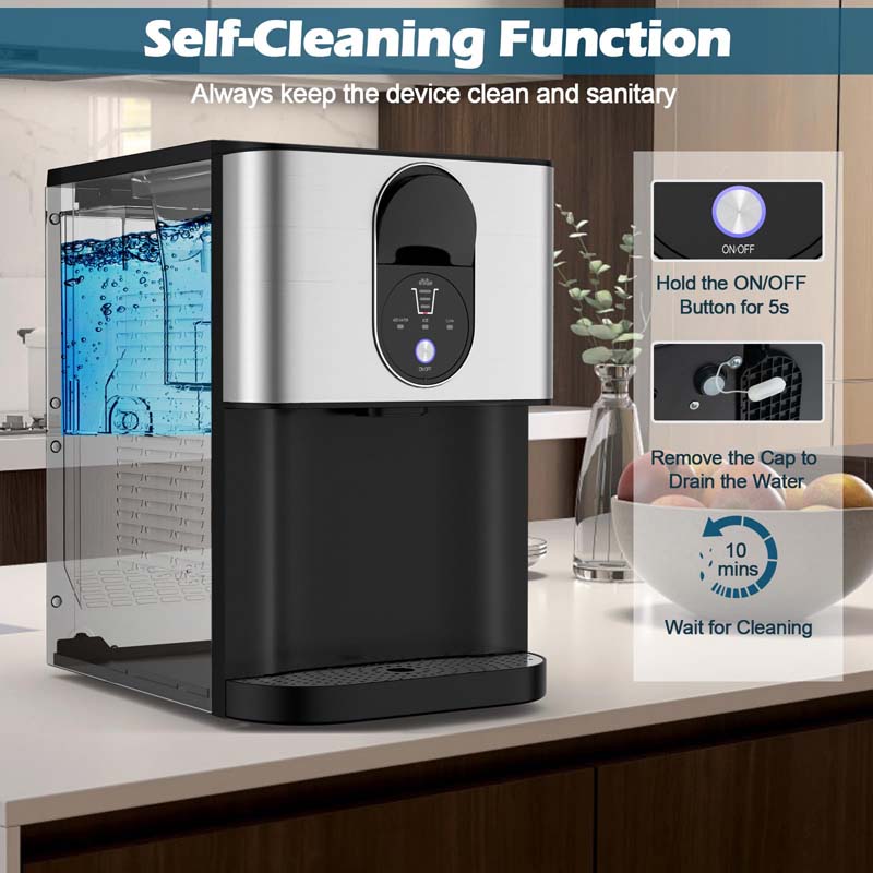 Cleaning is as easy as making ice. Just press and hold the ON/OFF button for 5 seconds to activate the 10-minute self-cleaning cycle, then remove the cap to drain. That’s it—your machine stays fresh with minimal effort.