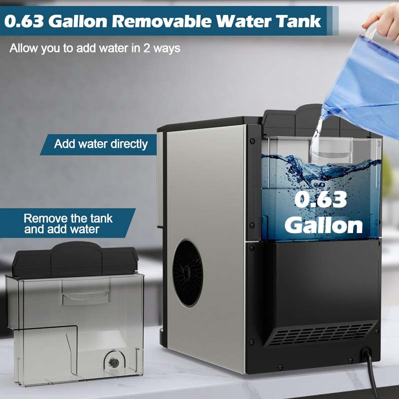 Refill the 0.63-gallon water tank by either adding water directly from the top or removing the tank for a quick fill under the faucet. This flexibility makes it easy to keep the machine running wherever you place it.