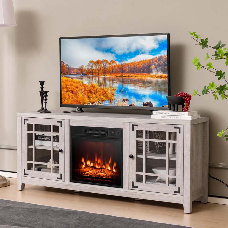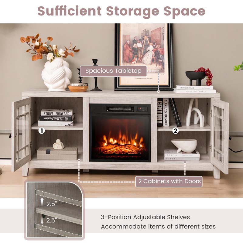 Enjoy cozy ambiance and functional storage with this multifunctional TV stand featuring a built-in electric fireplace. Designed with safety and convenience in mind, it includes an anti-tip kit and CSA-certified heater. The spacious surface fits TVs up to 65", while cabinets with adjustable shelves offer ample room for all your essentials. Whether it's winter warmth or year-round flame effects, this TV stand brings style and comfort to your home.