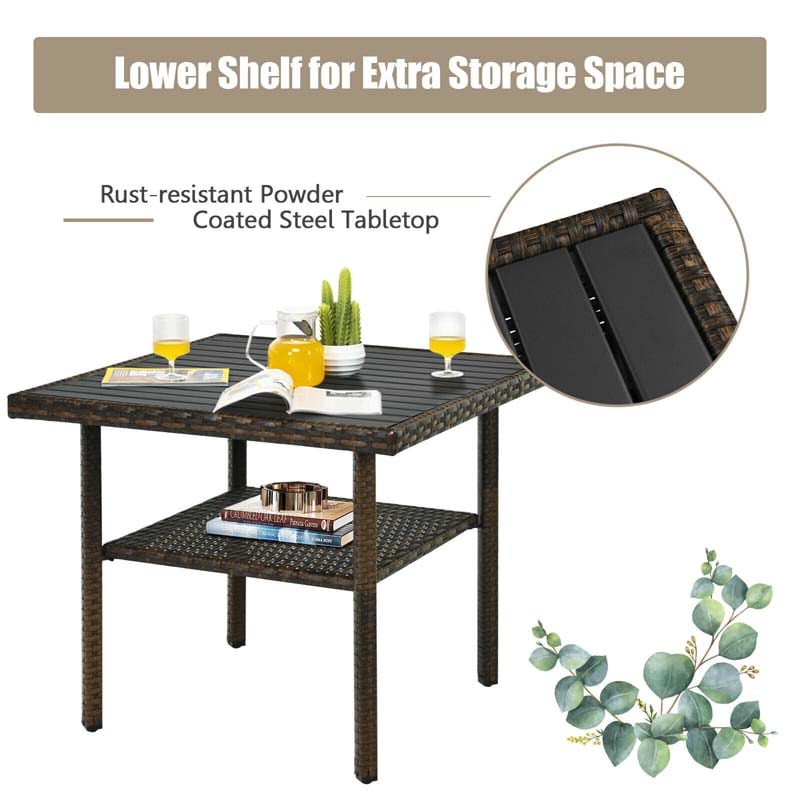Crafted with a powder-coated steel frame and handwoven PE rattan, the entire set is built to endure changing weather conditions while remaining sturdy and rust-resistant. Non-slip foot pads ensure stability on various surfaces.