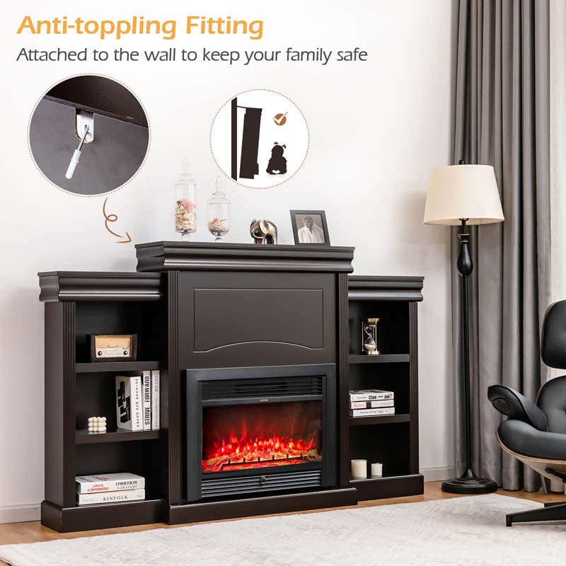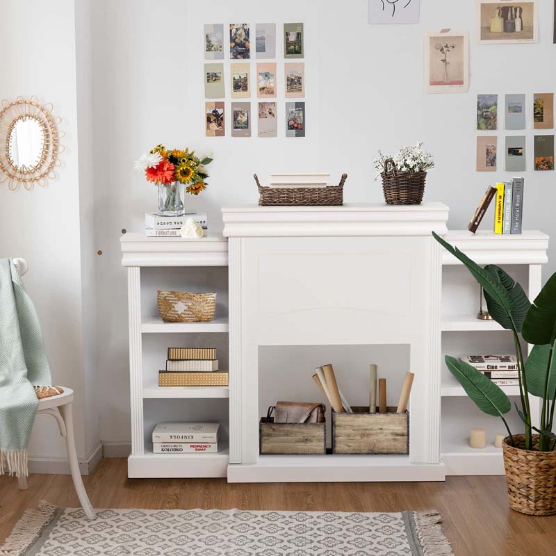 70" Modern Fireplace Cabinet Media Entertainment Center w/Bookcase, Wooden Mantel Stand Console Table for 28.5-Inch Electric Fireplace