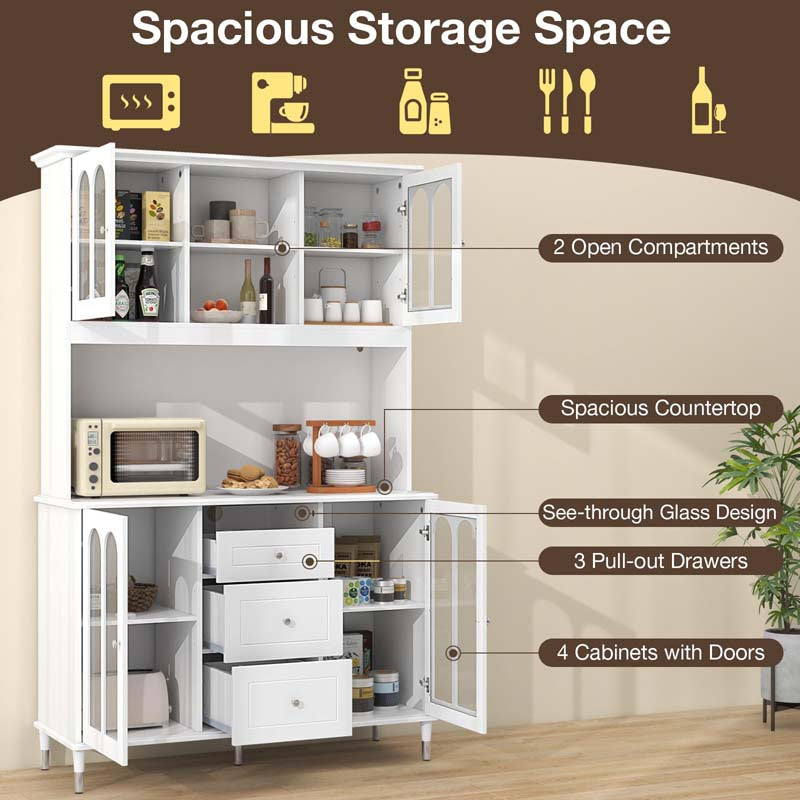 - Safety-first Design: Constructed from sturdy thick boards, this kitchen hutch includes two anti-toppling devices that help secure it to the wall, ensuring extra safety in high-traffic or family environments.
