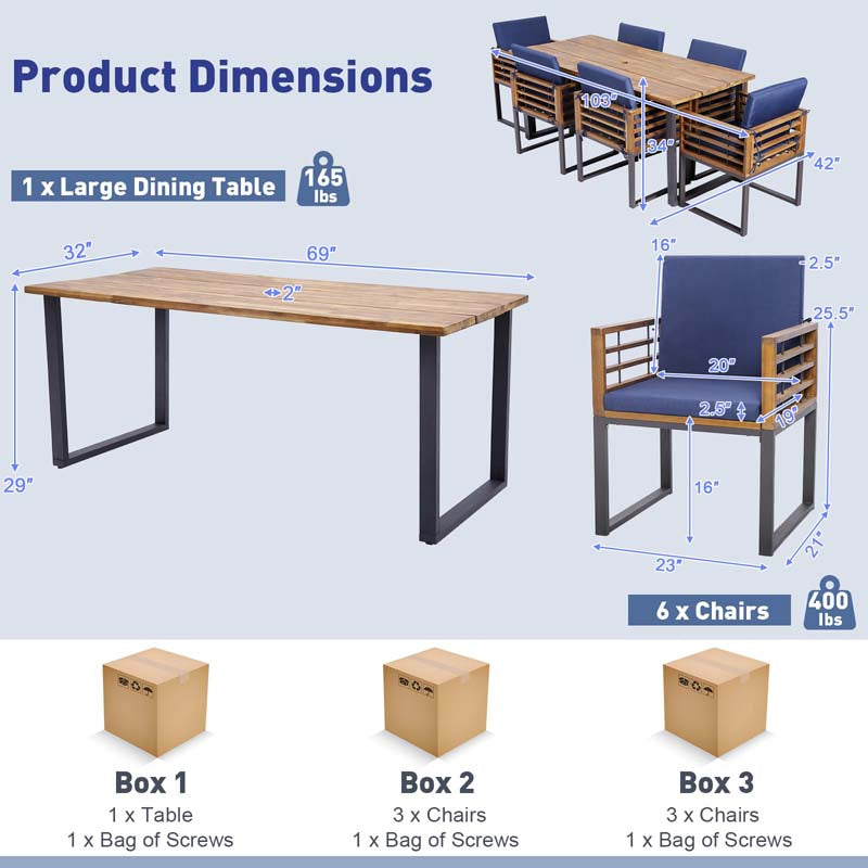 7-Piece Outdoor Patio Dining Set with Cushions and Acacia Wood Tabletop