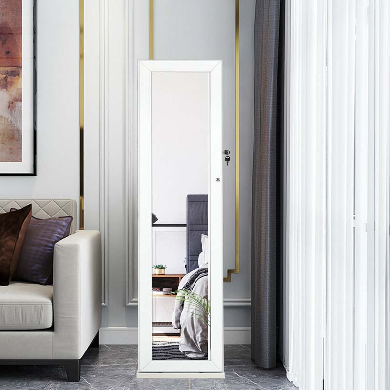 - 2-in-1 Mirror and Jewelry Cabinet: Combines the functions of a full-length mirror and spacious jewelry organizer in one; the high-quality full-length glass mirror provides a clear, head-to-toe reflection so you can view and coordinate outfits and accessories with ease.