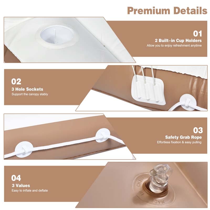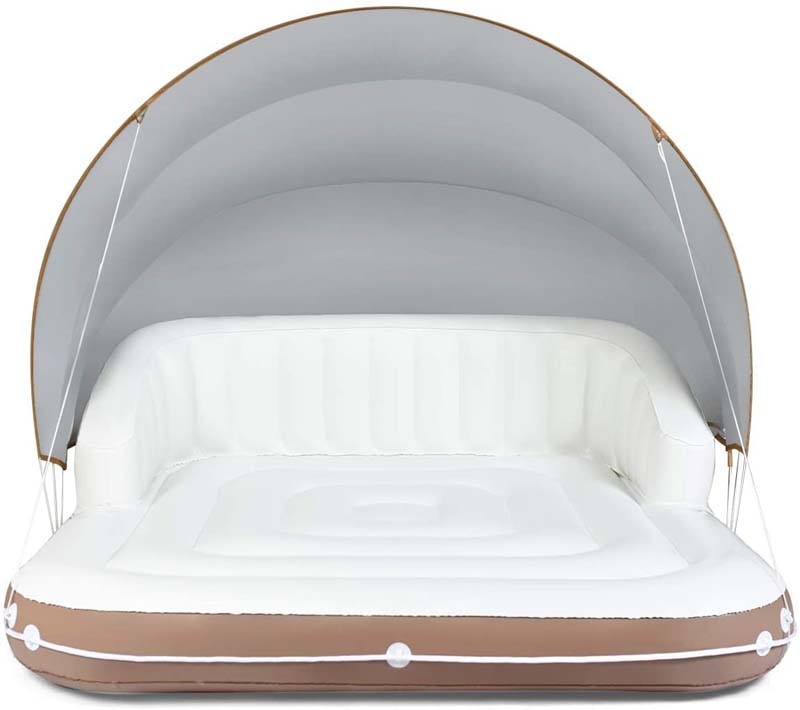 Giant Inflatable Pool Float Lounge Swimming Floating Island Raft with Retractable Canopy & 2 Cup Holders