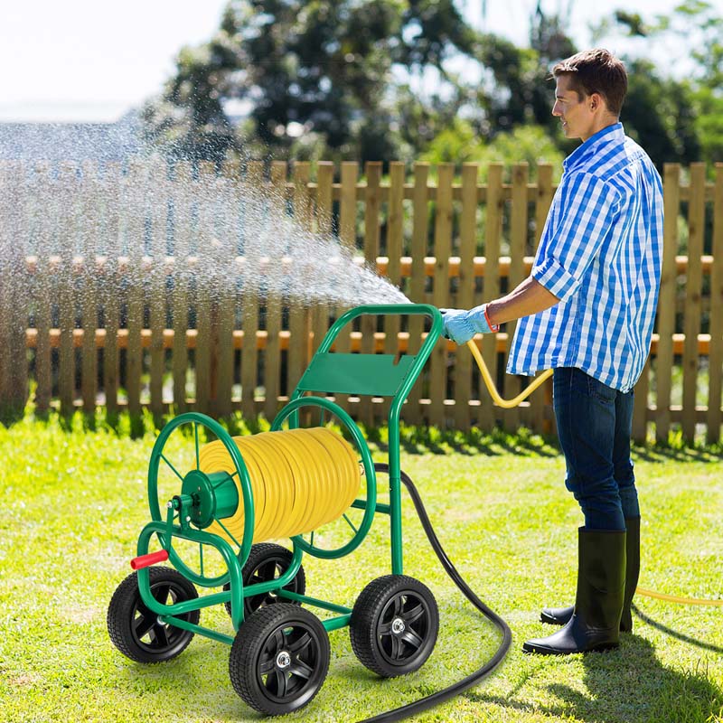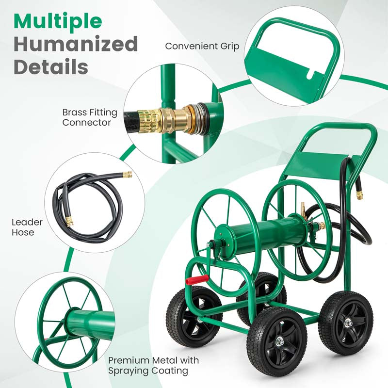 Green Garden Hose Reel Cart with Non-slip Grip, Outdoor Mobile Water Hose Cart, Hold 330 FT of 5/8" or 3/4", 400 FT of 1/2" Hose