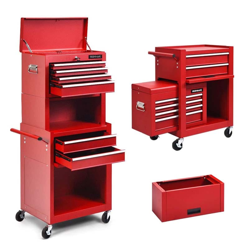 3-in-1 Design with Heightening Cabinet: Combines a top box, a center-height cabinet, and a bottom cabinet for maximum storage. The raised center section allows easier tool access and better organization compared to standard tool chests.