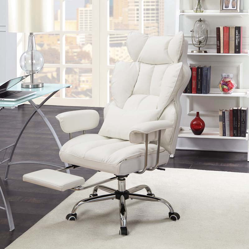 This reclining office chair includes padded armrests and an 11.5-inch retractable footrest, allowing you to kick back in comfort during moments of rest or brainstorming. It’s your personal command center for comfort and focus.