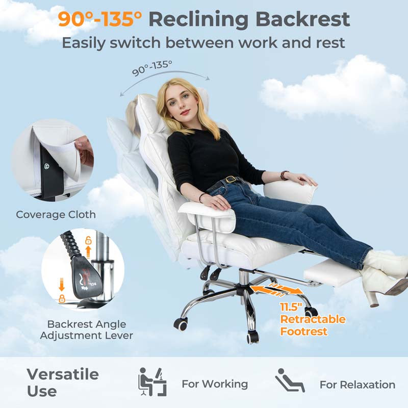Ergonomic Reclining Executive Office Chair – 90°-135° Adjustable Backrest, PU Leather, Footrest, Swivel & Height Adjustment – Heavy-Duty Task Chair with 350 lbs Capacity for Home or Office