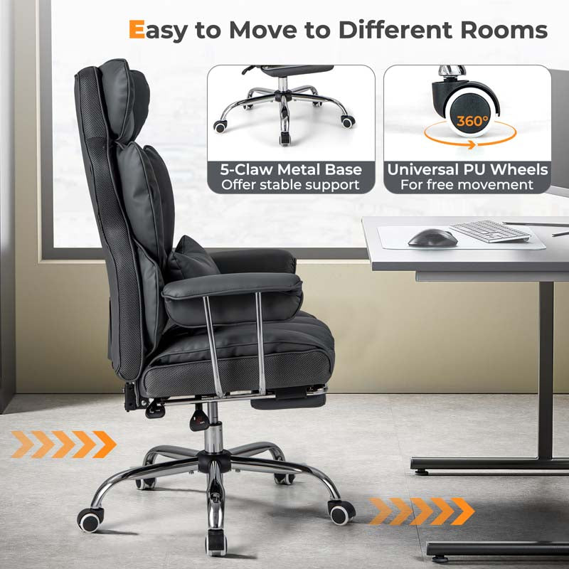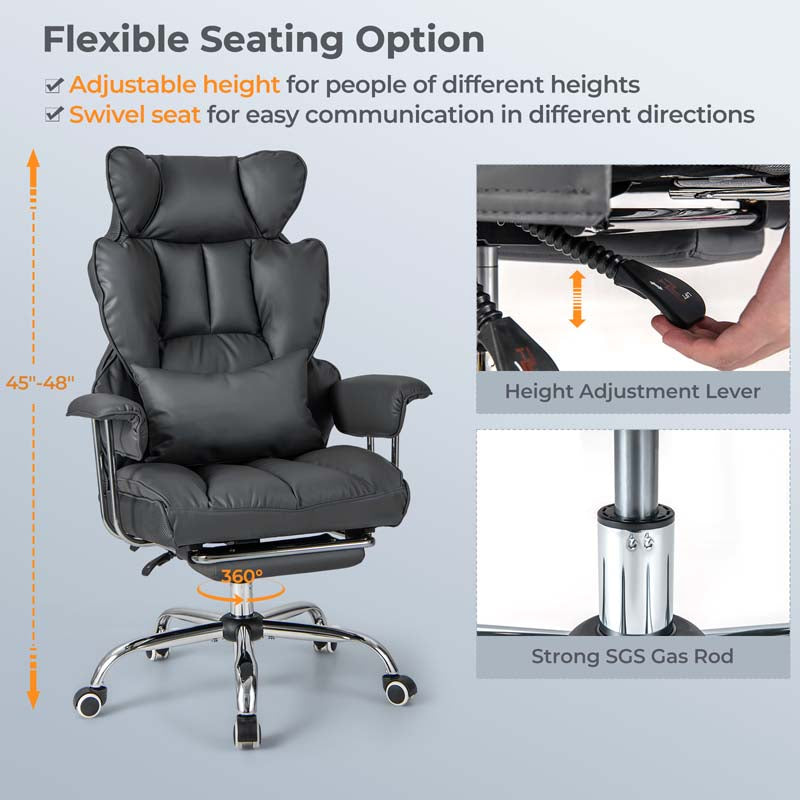 High Back Big & Tall Executive Office Chair with Reclining Backrest & Retractable Footrest, PU Leather Swivel Computer Task Chair