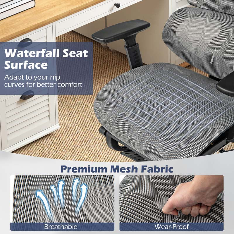 - Ergonomic Waterfall Seat with Footrest: Made with breathable, tear-resistant mesh, the seat cushion follows a waterfall curve that supports your hips comfortably. The slide-out footrest adds extra relaxation for your legs.