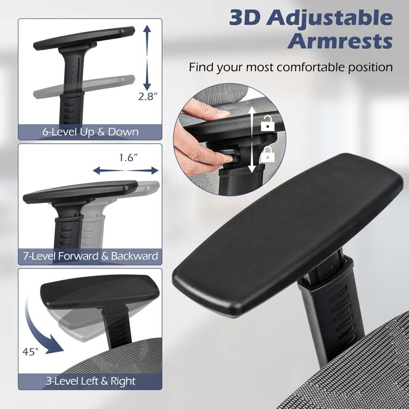 - Customizable 2D Headrest and 3D Armrests: Adjust the headrest by 2.6" in height and tilt it 40° for ideal neck support. The armrests can be moved 2.8" vertically, 1.6" front to back, and rotated 45° in either direction for maximum comfort.