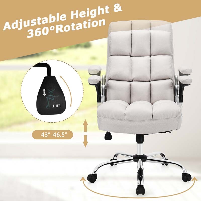 Linen Fabric Thick Padding Big & Tall Executive Office Chair with Flip-up Armrest, Swivel High Back Computer Desk Chair