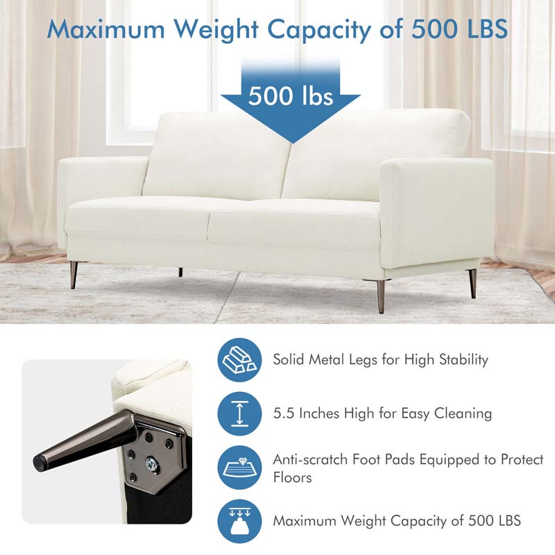 - Sturdy Construction: Designed to seat up to 3 people, this loveseat holds a max weight of 500 lbs; built on robust metal legs with non-slip foot pads to protect your floors and enhance stability across surfaces like hardwood or carpet.
