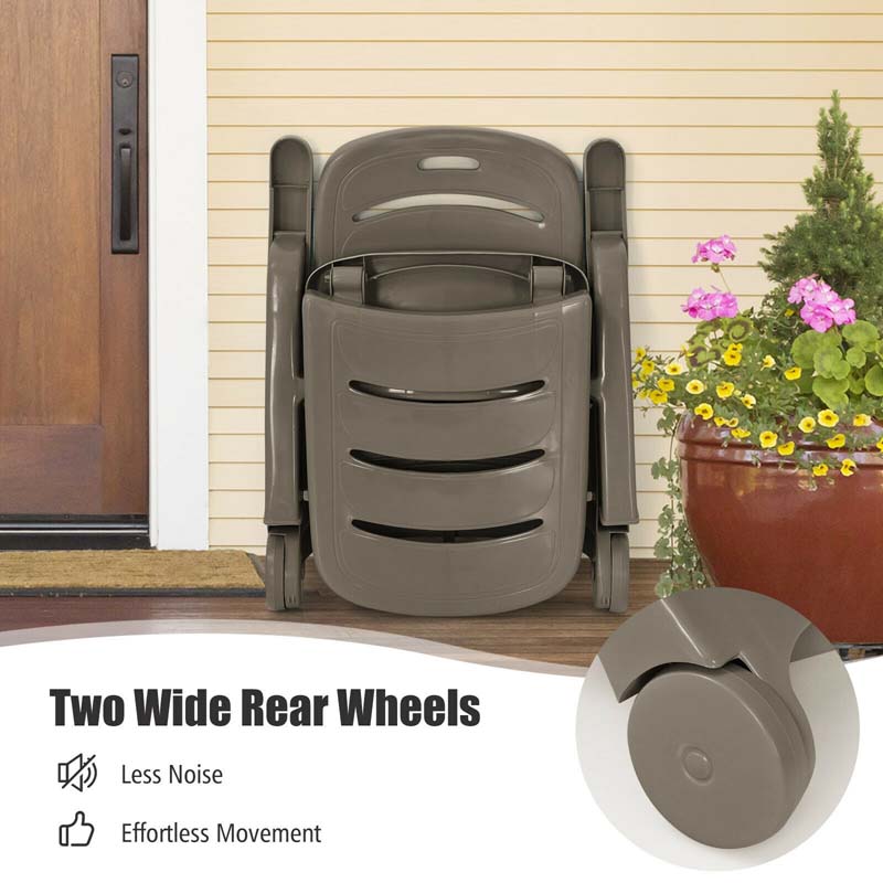 Equipped with two wheels, the chair can be moved effortlessly from place to place. Its foldable design also makes storage simple and convenient when not in use.