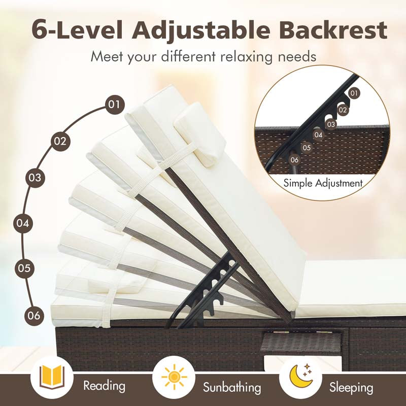 Enjoy luxurious comfort and timeless design with this elegant patio chaise lounge, perfect for your poolside, backyard, balcony, or any outdoor setting. Designed with 6 adjustable backrest positions, soft cushions, and a strong metal frame, it brings together durability and premium relaxation for all your outdoor lounging needs.