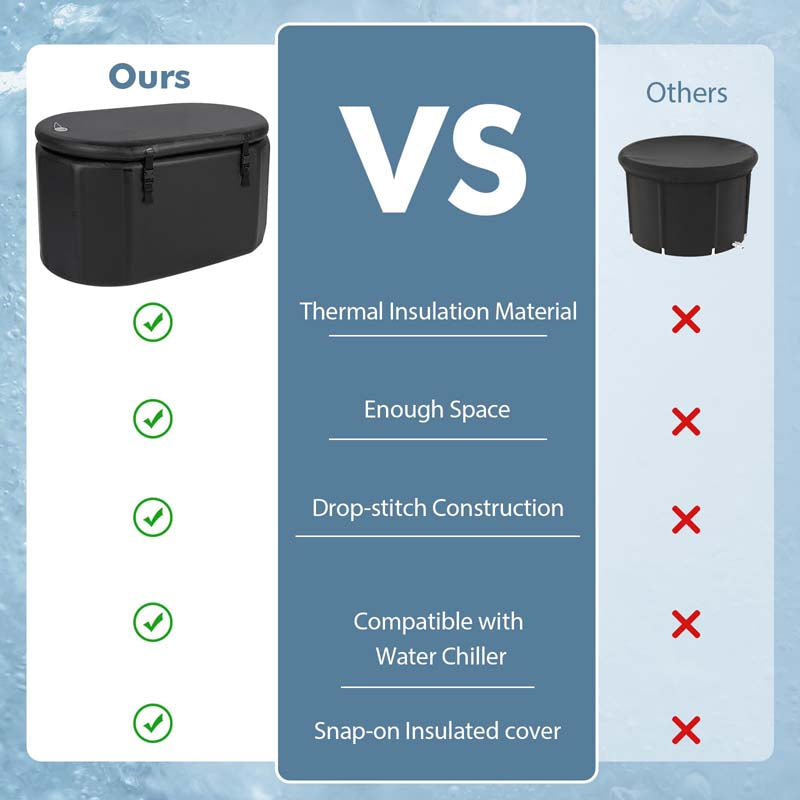 - Compatible with Water Chillers: Designed with 1/2" threaded water inlet and outlet, this ice tub supports connection to a water chiller system for efficient filling and draining. Note: Chiller not included.